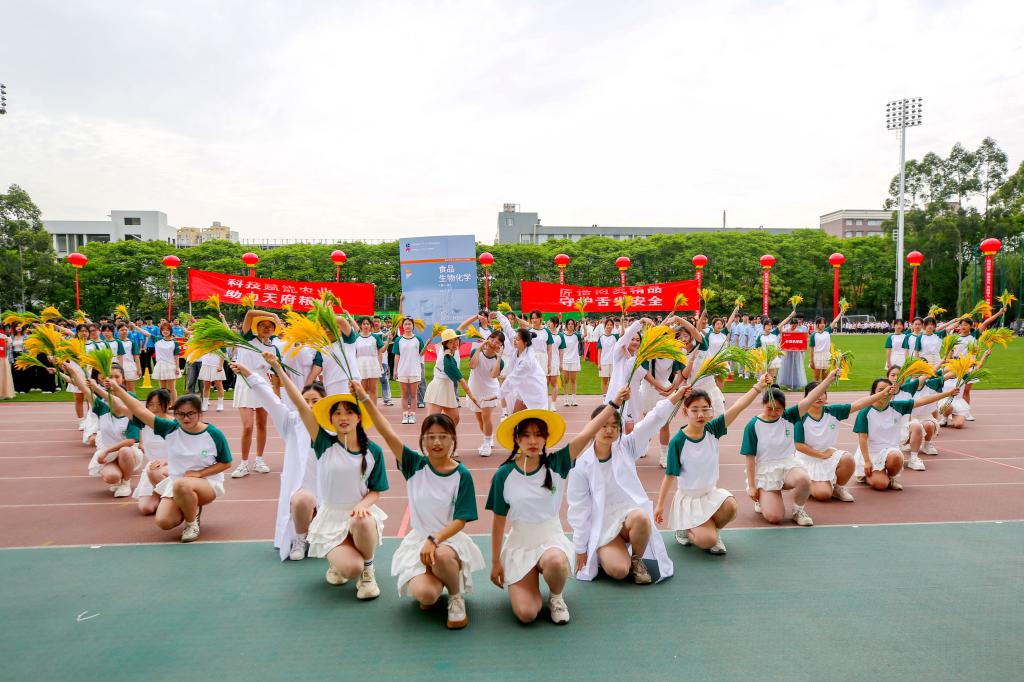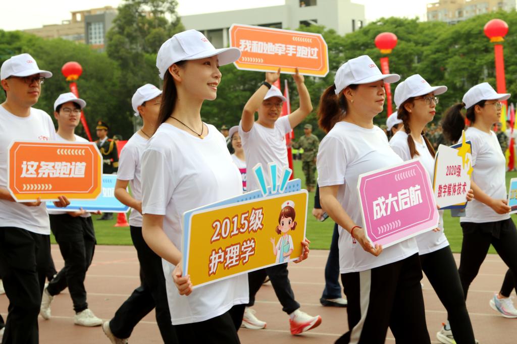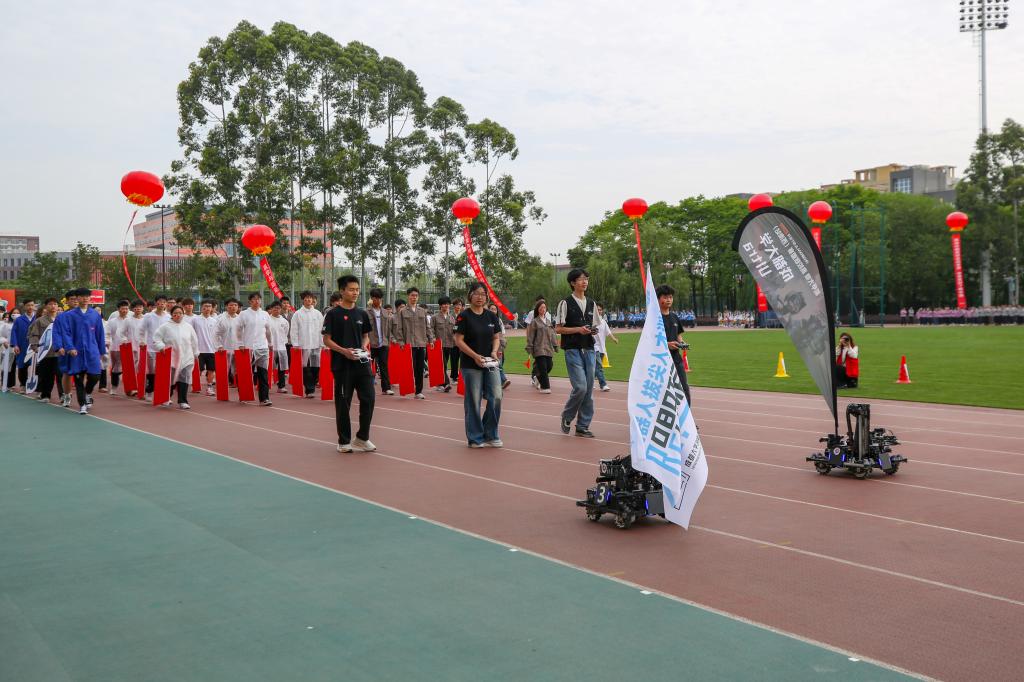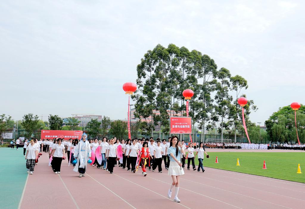 伴随着激昂的运动员进行曲,来自学校各单位的38个团体方阵陆续入场。别出心裁的队列造型、响亮提气的口号、创意十足的表演,大家纷纷“花式整活”。国旗、校旗、国防教育教导方阵率先入场。24名成大附属幼儿园的“小橙宝”们带来篮球操表演,活泼可爱;附属小学方队的小学生们带来了管弦乐表演;首次加入的校友方阵中,27名校友再度踏上熟悉的校园跑道,重回大学校园,重温大学时代,诠释“归来仍少年”的青春诗行。