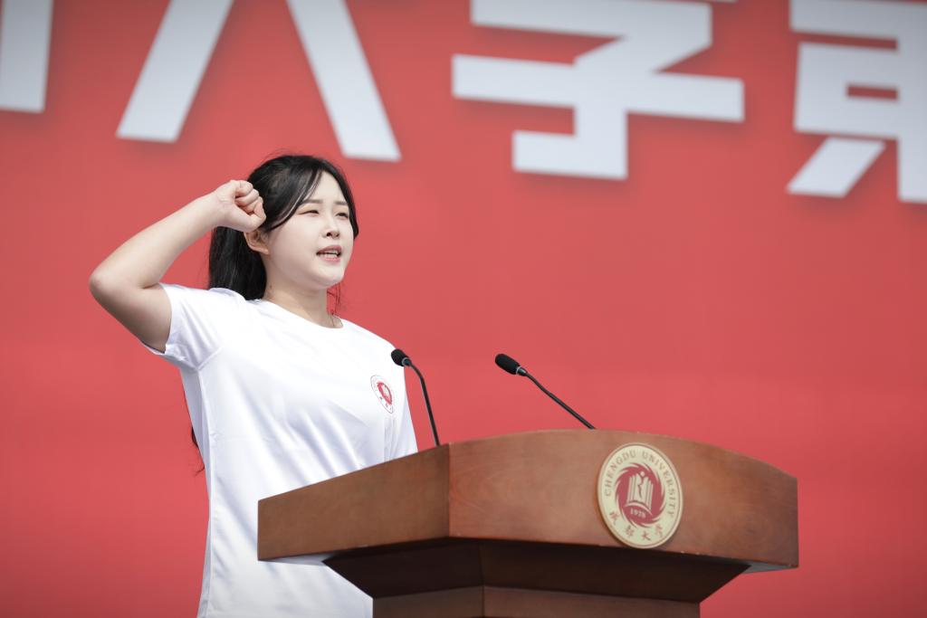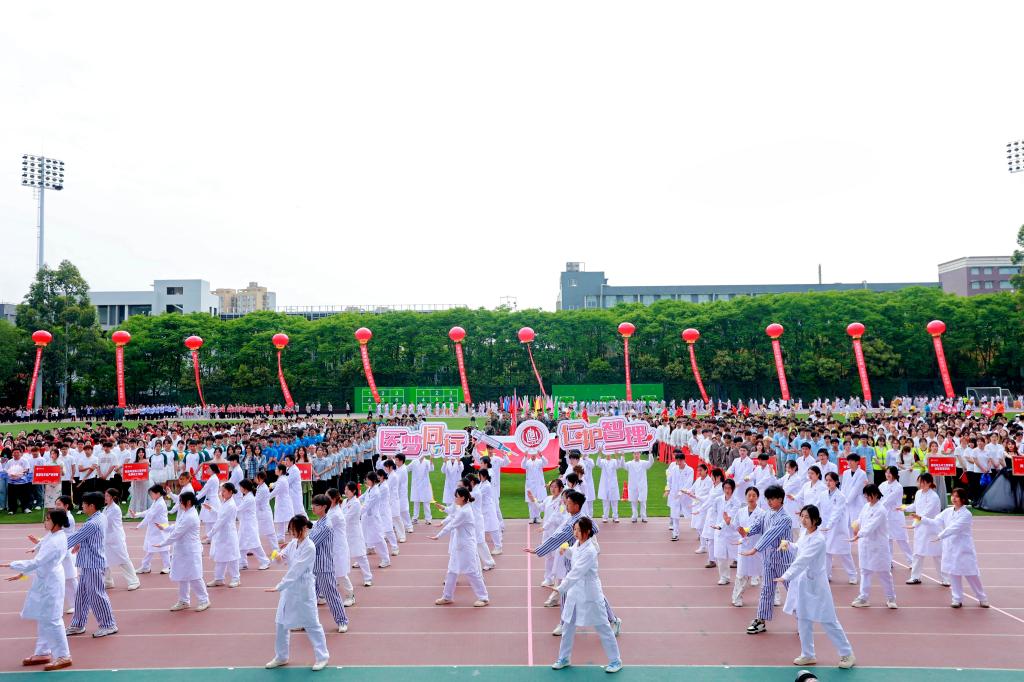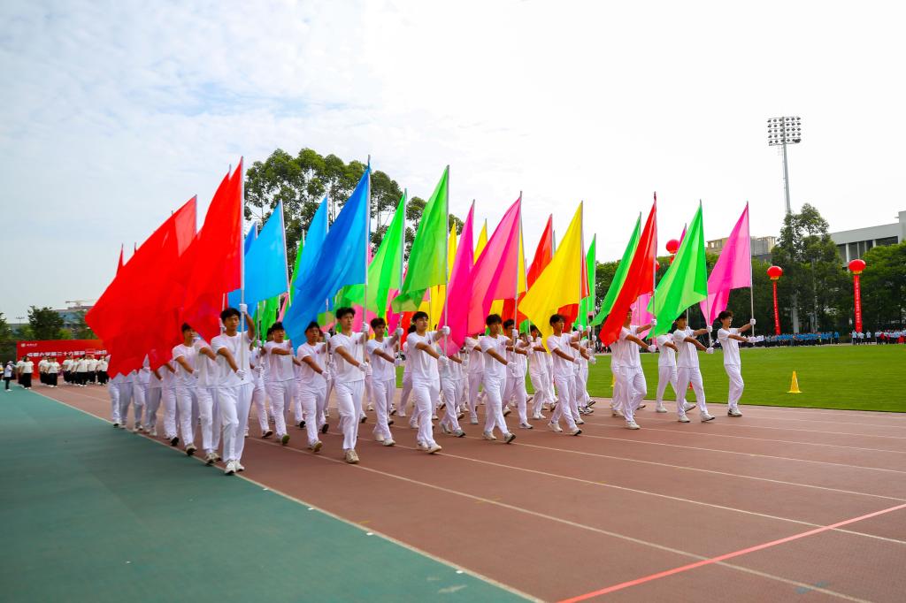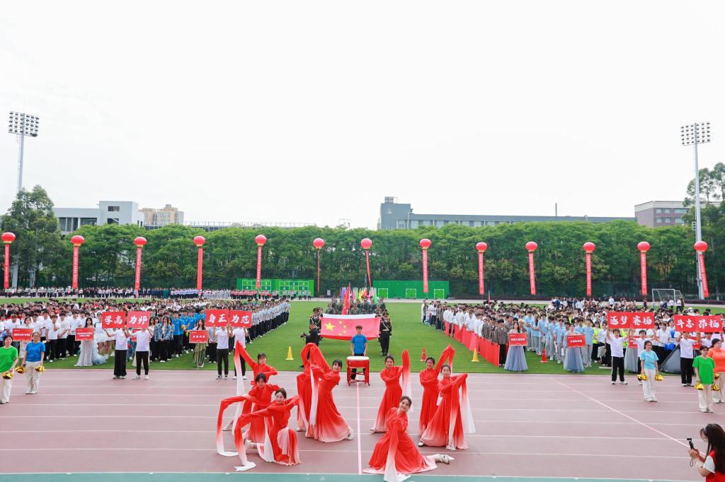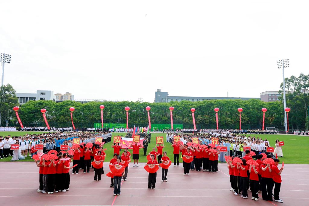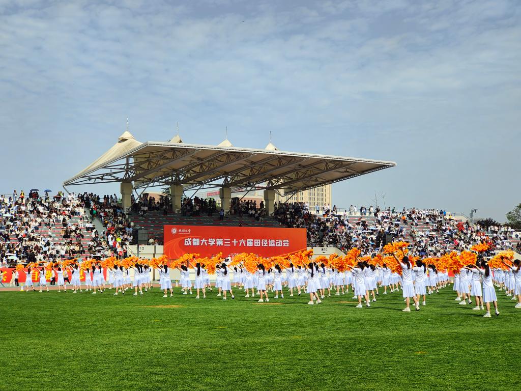 朱明致开幕词。他代表学校热烈欢迎参加运动会的师生校友和成大附幼、附小的未来之星们,向为本届运动会辛勤筹备的全体工作人员表示感谢,向刻苦训练、蓄势待发的运动员们致以美好祝愿!朱明指出,第31届世界大学生运动会的成功举办让世界见证了成都的活力与热情,也让“健康生活、积极运动”的大运宗旨和理念刻入成大发展基因。朱明表示,我们举办运动会,既是对大运精神的传承,更是对“自爱、自修、自尊、自强”校训的生动实践。运动会不仅是速度与力量的竞技场,更是一堂关于成长的人生课。在这里,胜负不是唯一答案,团结协作、永不言弃的精神才是永恒的主题。体育精神的价值,不仅在于赛场上的瞬间,更在于将这份激情融入日常。希望全体师生以运动会为契机,让运动成为终身习惯,让健康成为生活底色,共同为建设特色鲜明、国内一流应用型城市大学团结力量、积蓄能量!