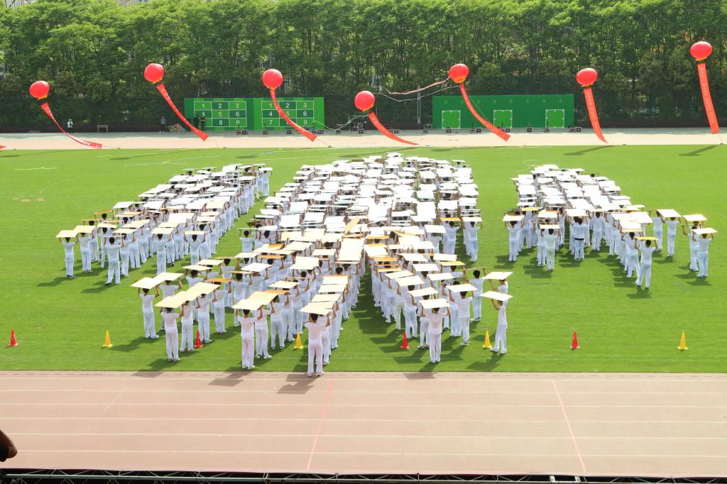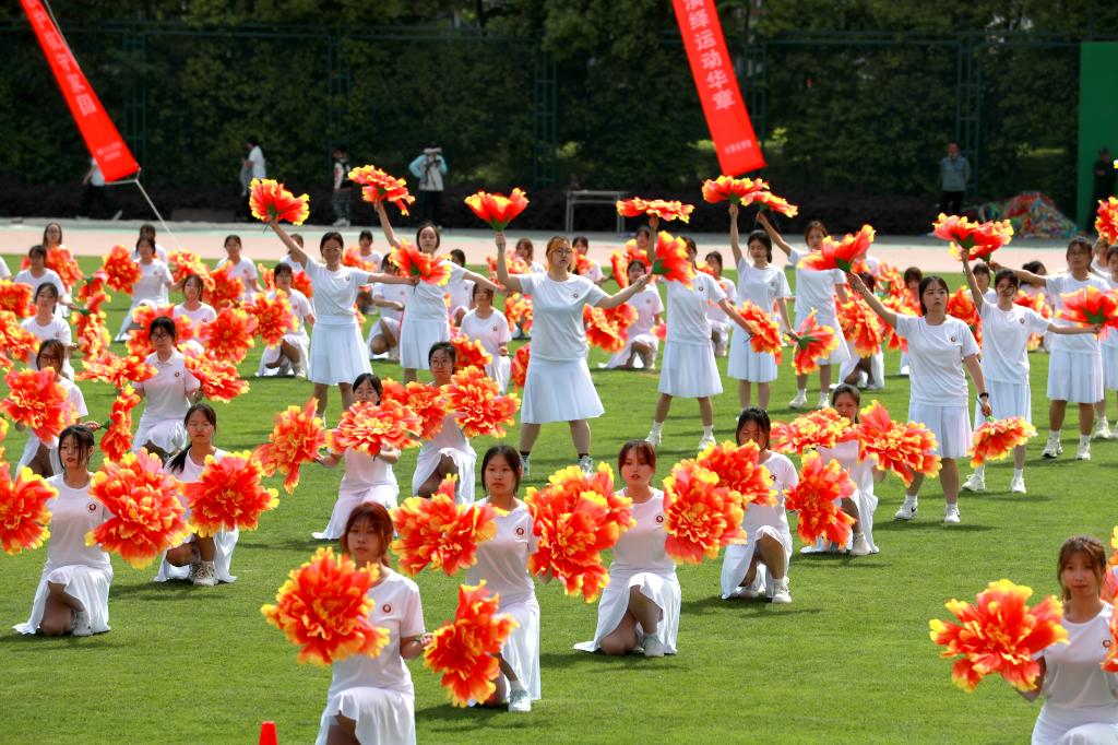 随着彩带的腾空而起,千人团体操表演将开幕式推入高潮。