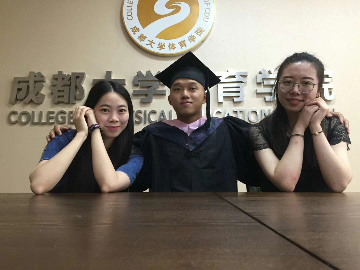 毕业时张艺和体育学院老师合影