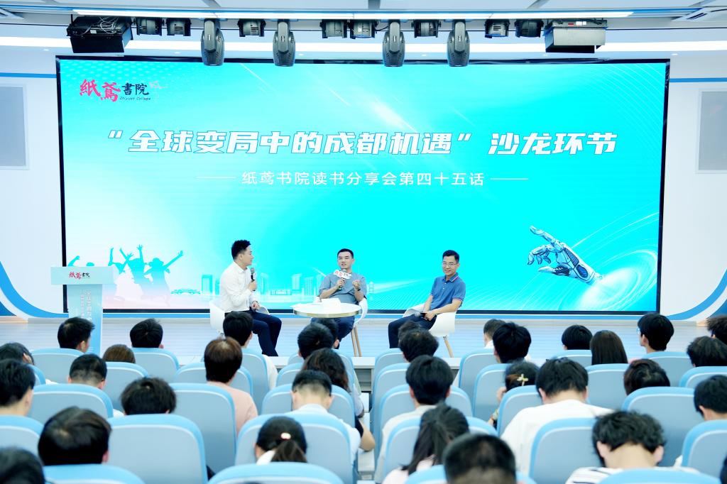 6月17日下午,由中共成都市委宣传部指导,纸鸢书院与太阳成集团tyc122cc入口联合主办,成都市广播电视台全媒体新闻中心承办的“全球变局与中国青年——如何在时代浪潮中锚定人生坐标”读书分享会在我校举行。市委宣传部副部长闵楠、市委宣传部宣传教育处(国防教育处)副处长胡瑞,我校党委常委、宣传部部长陈钧出席分享会。来自我校机械工程学院、建筑与土木工程学院、电子信息与电气工程学院、商学院、马克思主义学院以及新闻中心记者团的150余名师生参加分享会。