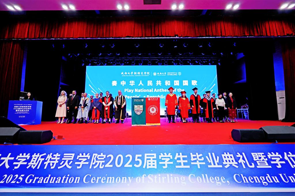 7月5日下午,斯特灵学院2025届学生毕业典礼暨学位授予仪式在学生活动中心演播厅举行。英国斯特灵大学名誉校长杰克·马科东诺,我校党委副书记、校长朱明出席典礼为毕业生授位。