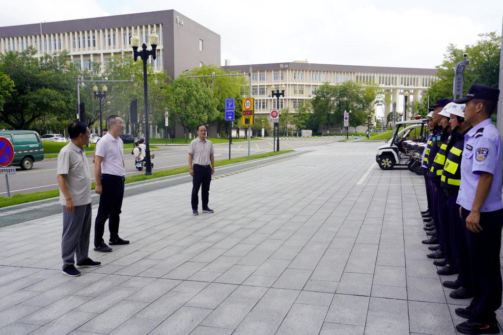 校领导先后来到学校招生录取现场、警务中心、学生宿舍14栋、五食堂、研究生处、世运会A村,走访慰问假期留校的师生员工和世运会派驻工作人员和志愿者,对大家坚守岗位和辛劳付出表示感谢,并叮嘱大家暑期安全。