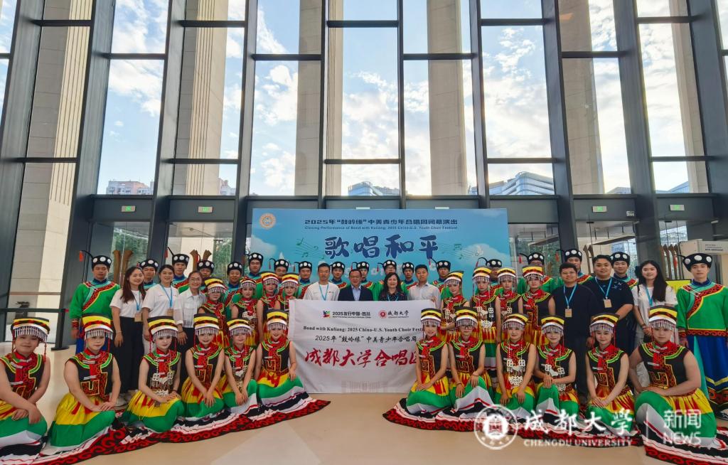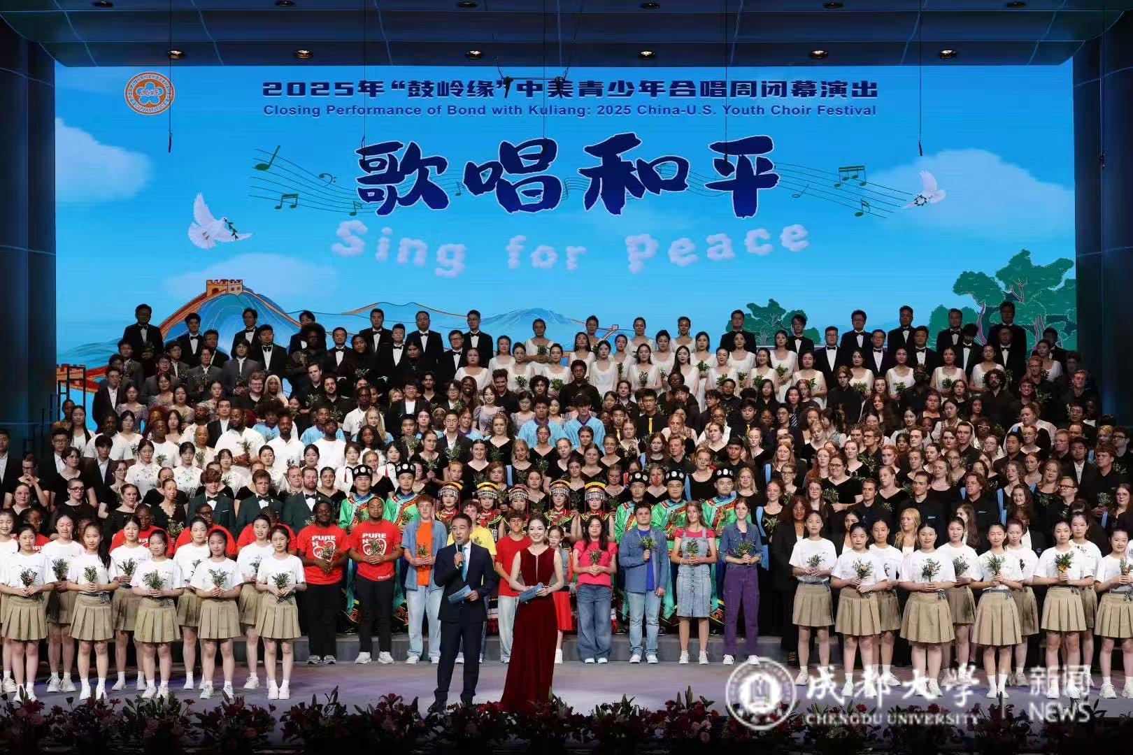 太阳成集团tyc122cc入口合唱团独立演绎的民族歌曲《彝歌》,生动呈现了中国少数民族音乐的魅力,彰显了青年一代对传统文化的传承与创新,赢得现场热烈掌声。此外,成大学生还与中美多支合唱团共同献唱《茉莉花》《和平颂》《WeAretheWorld(天下一家)》等经典曲目。不同文化背景的青少年在舞台上默契协作,充分展现了音乐跨越国界的力量,传递和平心声。