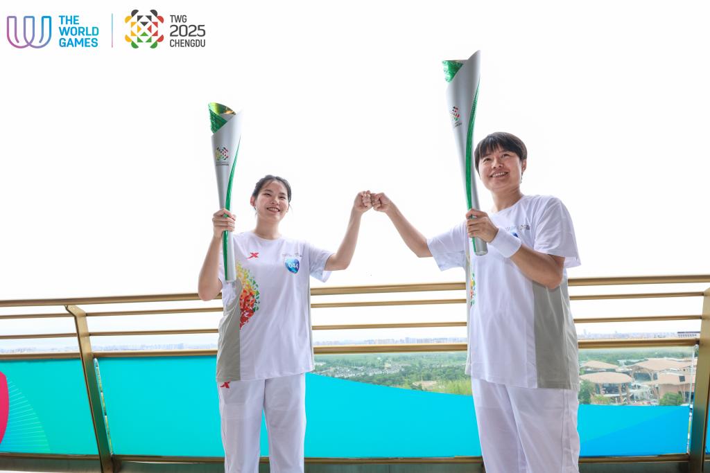 在成都大熊猫繁育研究基地,我校马来西亚籍留学生、2023级广播电视编导专业王馨宁作为第44棒火炬手,从全国农村青年致富带头人赵海伶手中接过象征和平与友谊的世运火炬,再传递给川北大木偶戏省级代表性传承人唐国良。短短几十米的传递,连接了乡村振兴、非遗传承和国际青年的不同篇章。