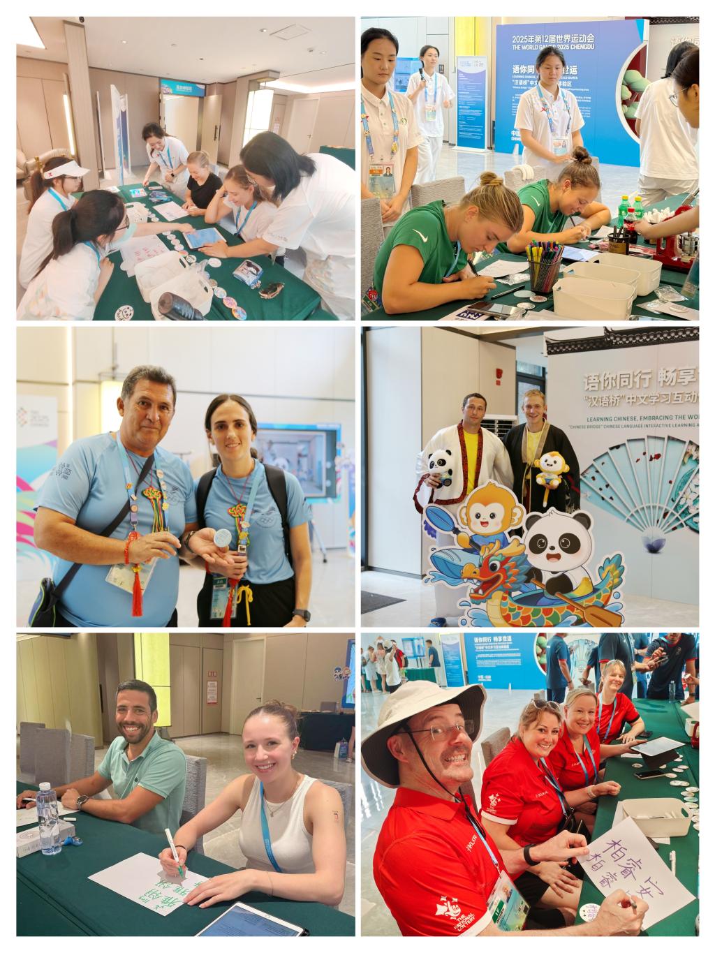 启动仪式结束后,嘉宾们一同参观体验了中文学习互动体验区。体验区包括取个中文名、学说中国话、学写中国字、学做中国菜、学画大熊猫、中国照相馆、徽章交换等中文学习和文化体验活动,世运会期间预计将为来自100多个国家和地区的5000多名参赛运动员及随团官员提供服务。