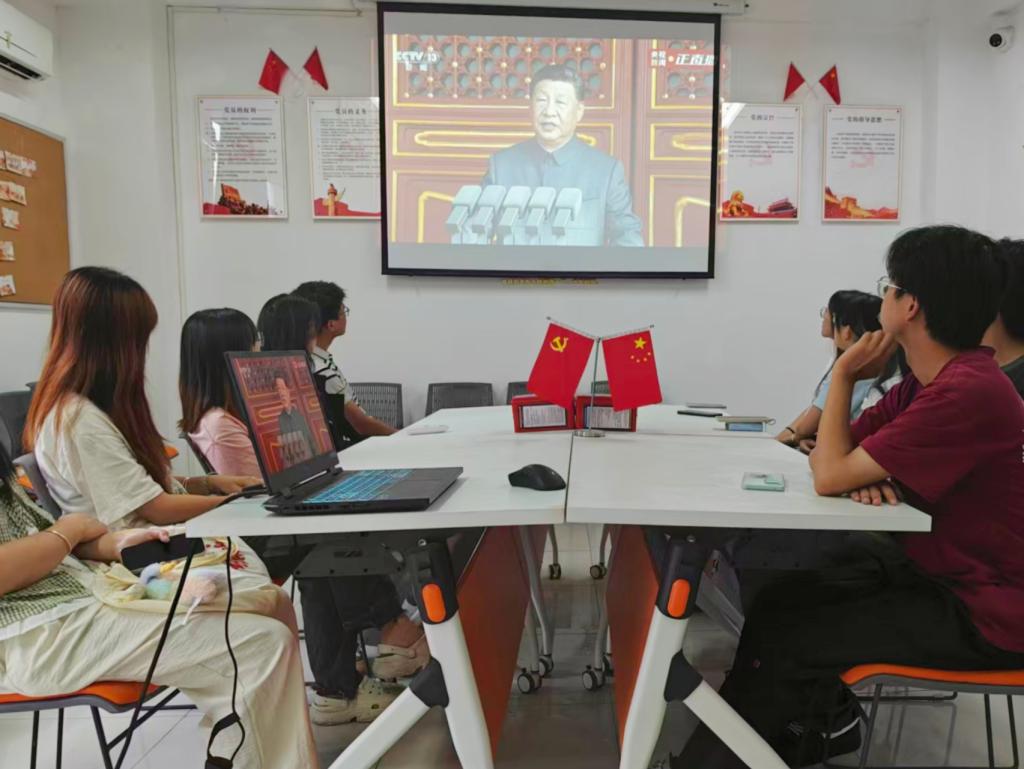 编者按:2025年是中国人民抗日战争暨世界反法西斯战争胜利80周年。9月3日上午,中共中央、全国人大常委会、国务院、全国政协、中央军委在北京天安门广场隆重举行纪念中国人民抗日战争暨世界反法西斯战争胜利80周年大会,中共中央总书记、国家主席、中央军委主席习近平发表了重要讲话。我校各院级单位党组织组党员干部和师生采取多种形式收听收看了纪念大会盛况,认真聆听了习近平总书记的重要讲话。我校干部师生对纪念大会的胜利召开反响热烈。一致认为,习近平总书记的重要讲话鲜明表达了铭记历史、开创未来的坚定决心,阅兵式充分展现了国力军力,鼓舞了军心民心。一致表示,抗日战争的伟大胜利是在中国共产党的领导下,中国人民用生命和鲜血取得的,要更加紧密地团结在以习近平同志为核心的党中央周围,坚定弘扬伟大抗战精神,立足本职岗位,以实际行动为强国建设、民族复兴伟业作出积极贡献。