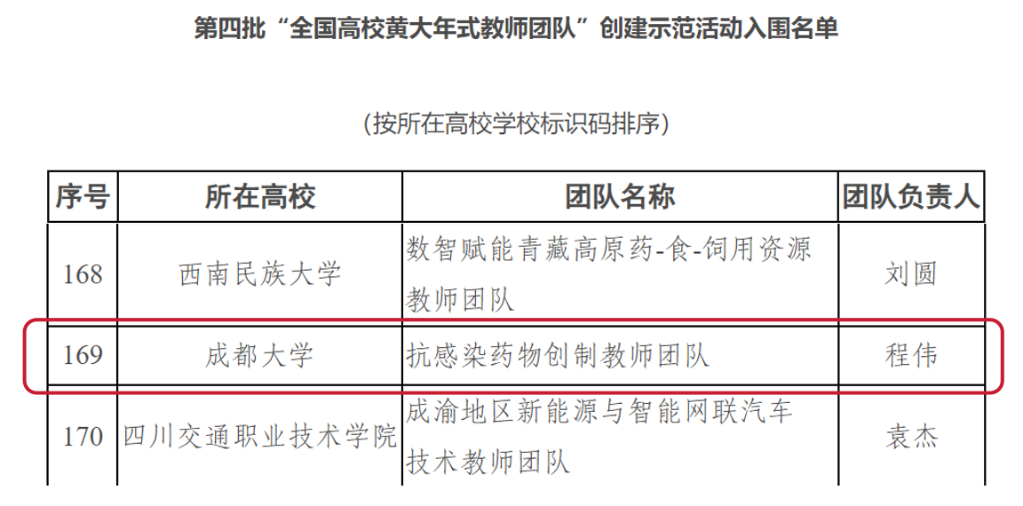 我校抗感染药物创制教师团队入选第四批“全国高校黄大年式教师团队”2025/09/09