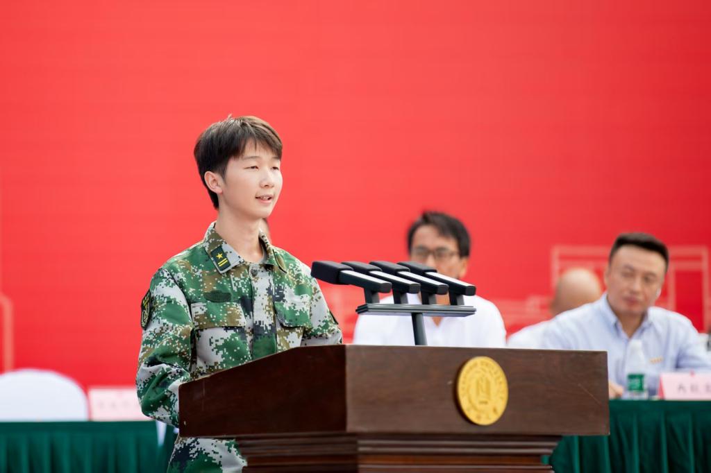 “我立志成为担当民族复兴大任的时代新人……立大志,明大德,成大才,担大任……”校学生会主席刘海婧带领新生进行入学宣誓,青春的誓言响彻绿茵场。