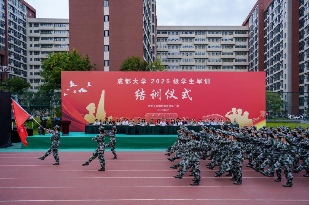 胡秀强向承训的龙泉驿区人民武装部指导教官、全体军训教官、带训教师和工作人员致以衷心感谢,祝贺受表彰的集体、个人及圆满完成训练任务的2025级全体同学。他强调,全民国防教育对巩固和提高国家安全意识、凝聚全民爱国拥军强大力量、筑牢国家生存发展的安全基石具有极其重要的意义。军训,是对同学们意志、体魄、纪律和团队精神的一次全面锤炼和洗礼。希望同学们永远铭记“令行禁止”的规则意识、 “敢打必胜”的斗争精神、“团结制胜”的协作理念,以军训为新的开端,把在军训中展现出的优良作风延续下去,以更加饱满的热情、更加昂扬的斗志、更加坚实的步伐,开启大学生活的新篇章,书写无愧于时代、无愧于青春的绚丽人生!