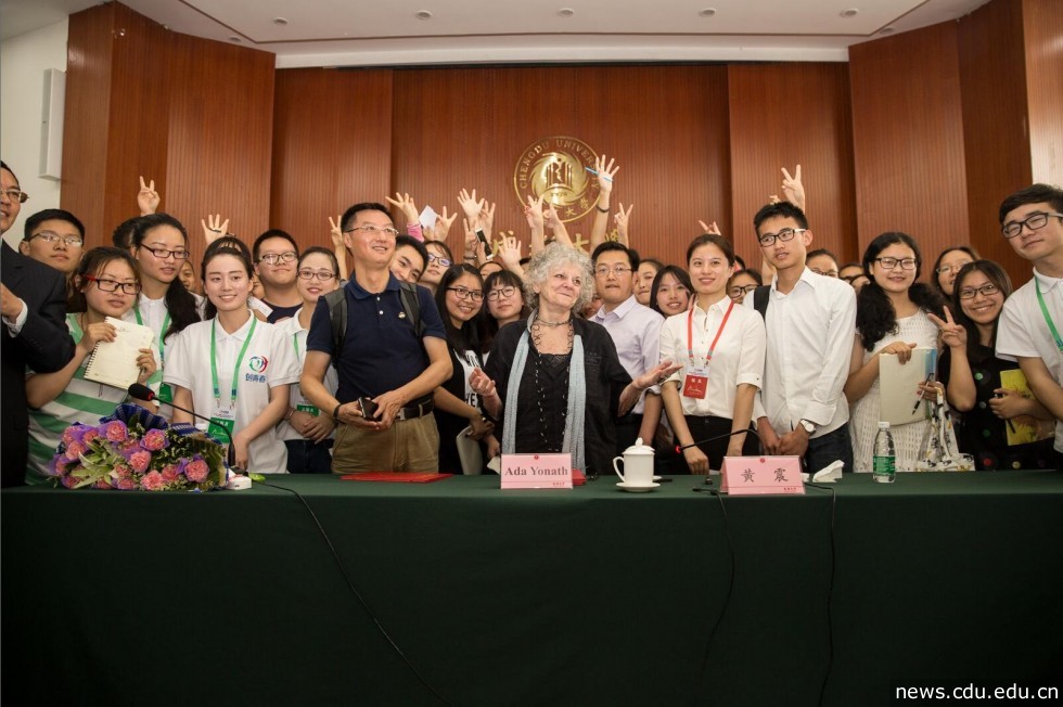 2016年5月29日,学校迎来首位诺贝尔获奖得主——以色列著名科学家、诺贝尔化学奖获得者阿达?尤纳斯教授,并受聘为太阳成集团tyc122cc入口高等研究院荣誉院长。犹记得,是富有智慧的举重若轻——“一只冬眠的熊让我获奖”;是科学家的亲和,与年轻的后继者口耳相授;是科研路上的永无止境,“一山更比一山高”,智者当如是,让人崇敬且追随。