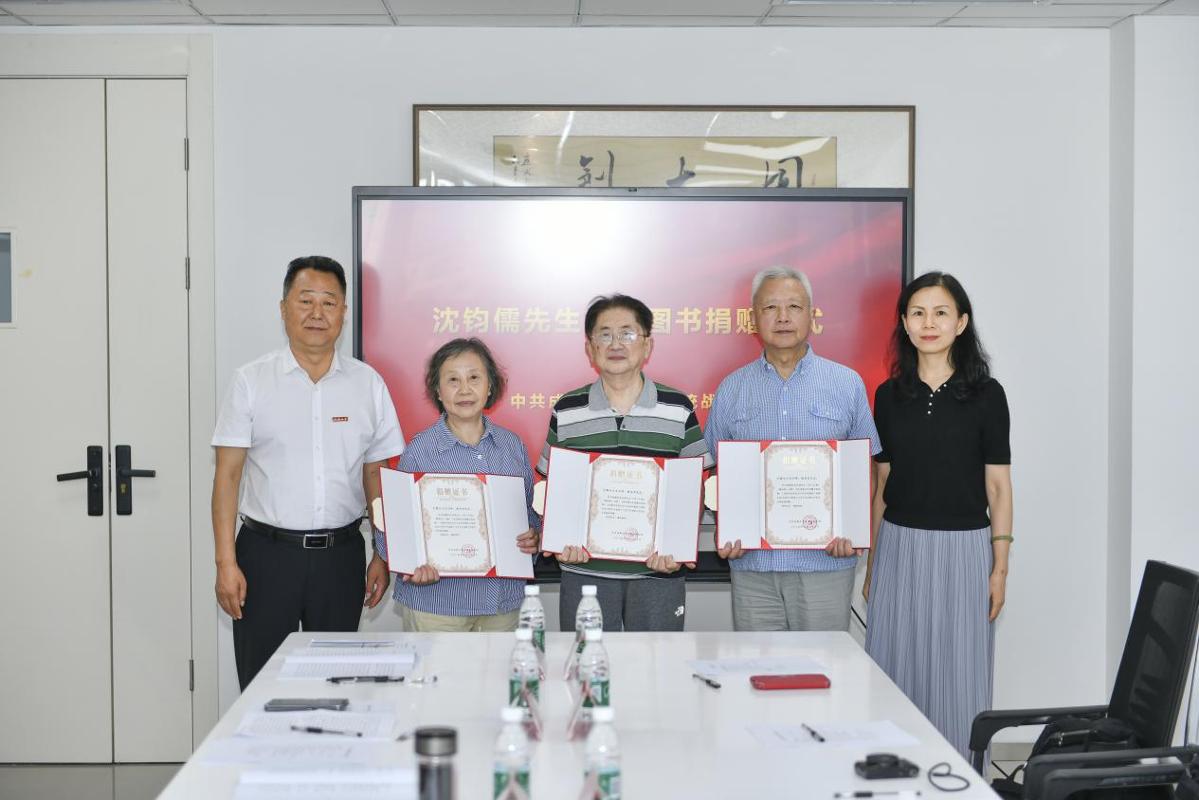活动上举行了中国民主同盟创始人、民主爱国人士沈钧儒先生藏书捐赠仪式,沈钧儒先生的孙女沈樱女士、孙子沈崢先生及学校原侨联主席谢尧荣向“统战之家”捐赠了从北京沈钧儒先生故居带回珍藏的全套《列宁全集》(共39卷)。胡秀强代表学校颁发捐赠证书,表达了诚挚谢意。