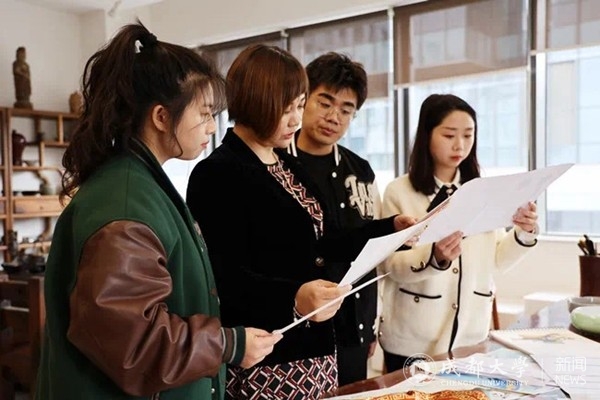 三年前,由于马丽娃教授一直在蜀锦领域深耕,对于蜀锦的创新设计具有丰富经验,因此接受了应用蜀锦技艺织造绶带的创意设计的任务委托。她随即组建设计团队,成员包括硕士研究生、本科生、专科生以及外援,随着绶带和周边衍生产品的设计,最后形成20余人的团队。