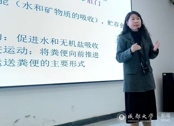 她也在工作中将这一理念贯彻始终。在学生眼中,余老师的课堂一直以“创意、有趣”著称,在一节《食品营养学》课上,余老师讲到上消化道和下消化道,说着便在自己的上腹和下腹位置比划起来,告诉同学们上、下消化道分别位于身上的什么位置,在临近下课时,她也会随机抽取同学起来回答本堂课的知识点,同学们就会模仿她的样子在自己身上一阵比划,有同学因没有比划准确,引得整个教室一阵笑声。