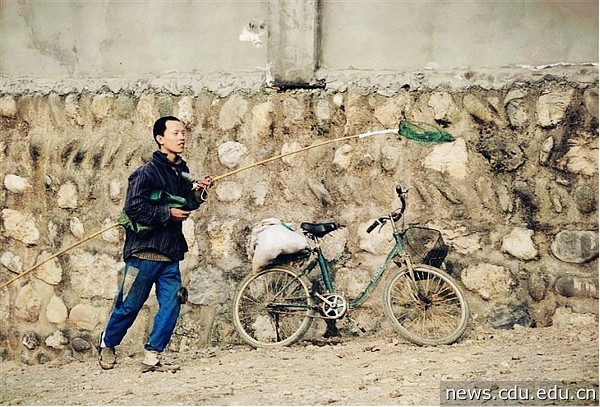 雎水踩桥,路上看见这小伙骑自行车在马路狂飙,被长长的棒子吸引,后来在踩桥会见到,得之“智障”,看着他为打捞“药钱”幸福的笑了。图/朱雪峰别样喜悦