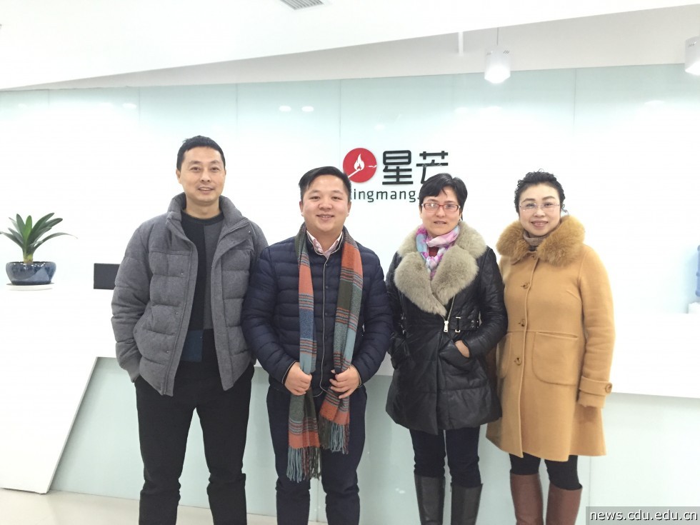几天前,学院为拍摄此次活动的热场视频,我们随他的班主任和学院领导一同拜访了他位于软件园的公司。刚从杭州参加完阿里巴巴年会,风尘仆仆赶回成都,听说母校的老师同学要来公司采访,他毫不犹豫的就答应了。