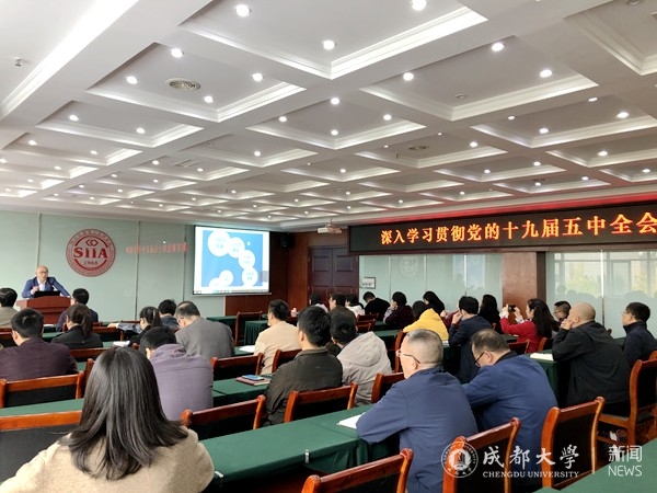 11月12日上午,药学院、川抗所党委召开党委中心组(扩大)学习会,集中学习了党的十九届五中全会精神,并对全院(所)学习宣传贯彻全会精神的工作作出了部署。院所领导班子成员、中层干部和各党支部书记委员参加了学习,会议由党委副书记、纪委书记甘茂杰主持。