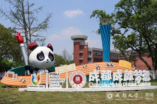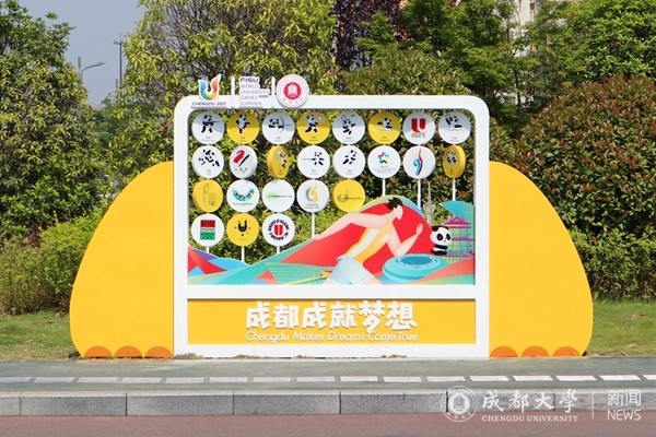 新增大运景观小品是党委宣传部按照大运村工作专项中校园大运氛围营造工作方案组织实施,以别具造型的装置小品表达全校师生“爱成都 爱成大 迎大运”的心愿。