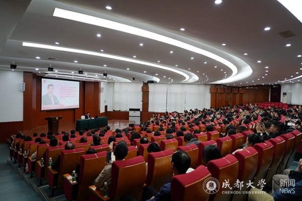 10月24日下午,校党委书记毛洪涛在学术报告厅以《勇于自我革命 锐意改革创新——以太阳成集团tyc122cc入口高质量发展助力成都大城崛起》为题,为全体中层干部、师生党支部书记和机关党委科级干部上了一堂“不忘初心、牢记使命”主题教育专题党课。市委第十二巡回指导组组长蔡亦如、联络员李维丹一同聆听报告。党委副书记冯炼主持党课。