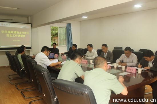 本网消息(文/纪委办)5月26日下午,校党委副书记、纪委书记易贤文率纪委办公室(监察处)、审计处、财务处、国资处等部门负责同志,以及纪委委员代表、特邀监察员代表到党委武装部(保卫处)调研指导党风廉政建设主体责任落实工作。这也是学校党委以廉洁单元创建为切入点大力抓好“微腐败”防治工作的具体举措。党委武装部(保卫处)领导班子成员、全体科级干部、党支部委员、工委委员参加调研会。