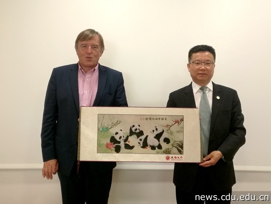 在伊望拉修市长陪同下,代表团一行访问了尼姆大学。王清远与尼姆大学校长洛克斯进行了友好会谈。双方就建立友好合作关系,开展本科双学位项目、硕士及硕博联合培养项目进行了详细商讨。会谈后,法国南部最大的报纸《南方自由报》记者对双方校领导进行了采访,随后以“尼姆大学:踏上与中国成都的合作之路”为题进行了报道。