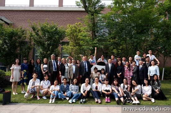 本网消息(文/于佳霖 图/刘海、陈玥州)5月9日下午,成都市国际友城、丹麦霍森斯市市长彼得·索伦森率代表团访问我校,丹麦VIA大学副校长康斯坦丁·拉斯狄托迪斯随团到访。校长王清远会见来宾,并共同出席丹麦VIA大学菁蓉工作坊创新创业训练营结业仪式。彭晓琳副校长陪同参加活动。
