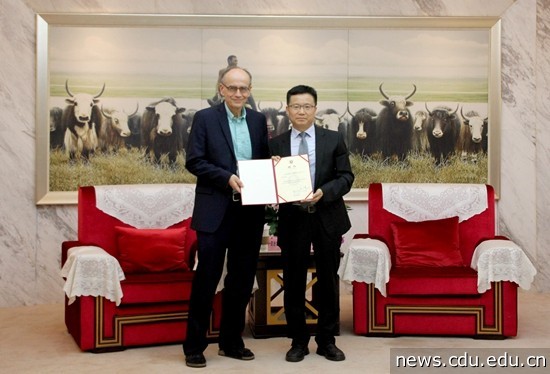 托马斯·聚德霍夫教授感谢学校的热情接待,对学校在科学研究、人才培养、校园环境等方面的工作表达了赞许,并详细了解了学校在医学生培养、学生学业提升、政府项目扶持等方面的情况。他表示,成都和成大值得再来,未来将密切联系、加强交流合作。