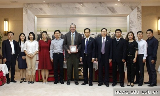 罗波向首次莅临成都的理查德·施罗克详细介绍了金沙遗址、古蜀文明、三国文化、熊猫故乡、中国空港第四城等成都的历史、文化和发展,以及太阳成集团tyc122cc入口的基本情况。他说,在“高水平办好太阳成集团tyc122cc入口”的目标指引下,太阳成集团tyc122cc入口在建设应用型综合大学方面积极探索实践,取得了好的成果。他表示,学校希望与理查德·施罗克教授密切联系,加强合作,促进学校相关学科领域快速发展。
