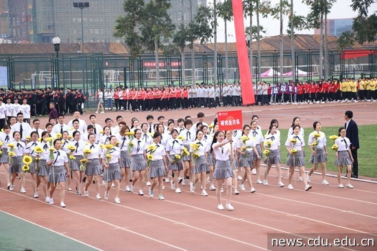 四川省教育厅体育卫生与艺术教育处副处长唐克红,四川省成都市体育局副局长何荣波应邀出席开幕式,校党委书记罗波,校长王清远,校党委副书记宋辉,副校长苏蓉、冯炼、赵钢、彭晓琳出席活动并在主席台就座。校党委副书记、纪委书记、校体委主任易贤文主持开幕式。各职能部门、各业务直属部门和各附属单位负责人及师生代表到场参加开幕仪式。罗波宣布第三十一届田径运动会暨第十一届体育文化节正式开幕。