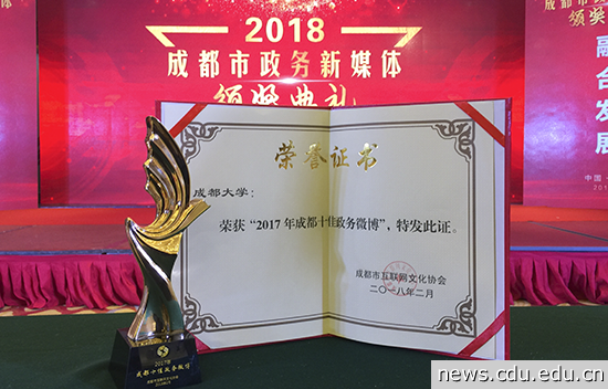 本网消息(文/筱凯)2月6日,2018年成都市政务新媒体峰会召开,成都市政务新媒体集体亮相。市网信办、市互联网文化协会对2017年成都市政务新媒体运营优秀账号和先进集体进行了表彰。我校官方微博荣获“2017年成都十佳政务微博”称号。