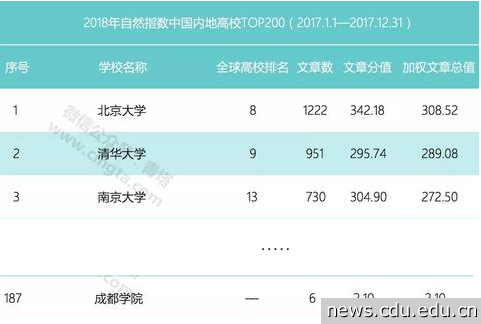 本网消息(文/骐骥)近日,自然出版集团公布2018年自然指数(统计时间为2017年1月1日-2017年12月31日)。我校位列中国大陆高校第187位,6篇文章在自然指数收录期刊上发表。
