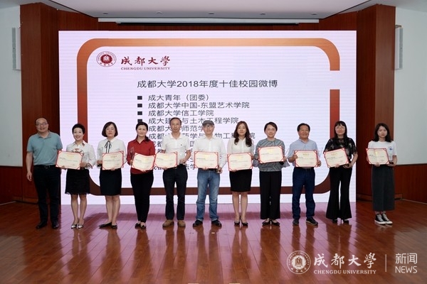 颁奖典礼上,学校还表彰了2018年度十佳校园微博和十佳校园微信账号运营单位。