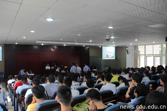 本次“法律进高校 庭审进校园”活动由学校法律进校园工作领导小组主办,由党委宣传部、学工部、政治学院承办。龙泉驿区人民法院是“省级卓越法律人才校外示范性实践基地”,与政治学院长期合作,每学期定期在我校开庭审判,通过体验真实庭审现场对广大师生进行法治教育。