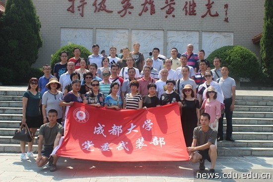 本网消息 (文、图/许远良)为了深刻缅怀革命先烈,继承发扬革命先烈优良传统,弘扬军人英雄本色,7月13日,党委武装部组织全校退转复军人代表到中江县黄继光纪念馆参观学习。