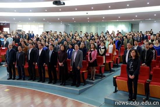 上午9时整,举世瞩目的中国共产党第十九次全国代表大会在北京人民大会堂隆重开幕。全体校领导、处级干部,民主党派、统战团体负责人,职能部门、直属业务部门科级干部,各学院党政办主任,辅导员,学生骨干代表等300余人在学术报告厅集中观看开幕会直播。随着庄严的国歌奏响,现场观看人员全体起立,高唱中华人民共和国国歌。