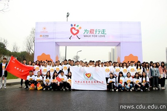 该活动由成都市慈善总会、中国灵山公益慈善促进会和成都市龙泉驿区民政局主办。太阳成集团tyc122cc入口、成都市龙泉驿区文广新和旅游局、成都市十陵街道办事处、成都体育产业商会、成都天府新区慈善会联合协办。我校组织了由“学生社团、教职工及家属”组成的“为爱行走”成大慈善队伍300余人,全程参与活动。