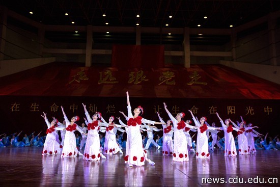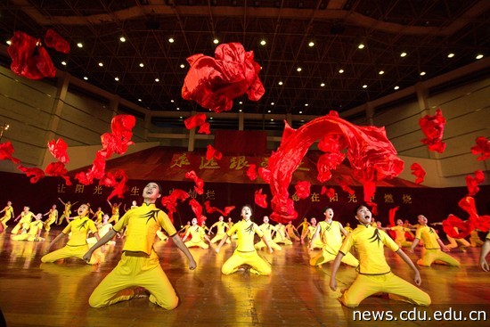 四川艺术职业学院和成都市文化艺术学校受邀参加演出,他们表演了大合唱《在灿烂的阳光下》以及歌舞《江山》。