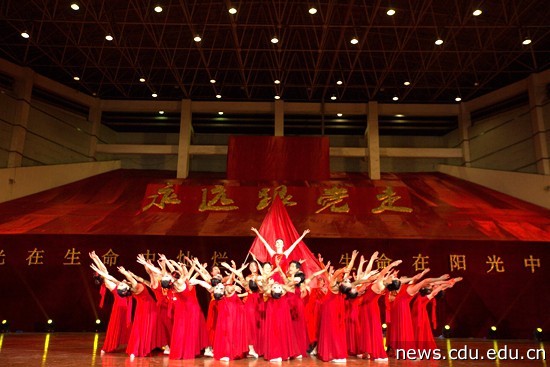 我校美术与影视学院的梅洋红同学在演出后激动地说:“看了阳光艺术团的表演,非常振奋,他们虽已退休,但仍然坚持跳舞,对艺术的执着和热情值得学习。自己是一名党员,希望通过表演,向党的生日献上衷心的祝福”。