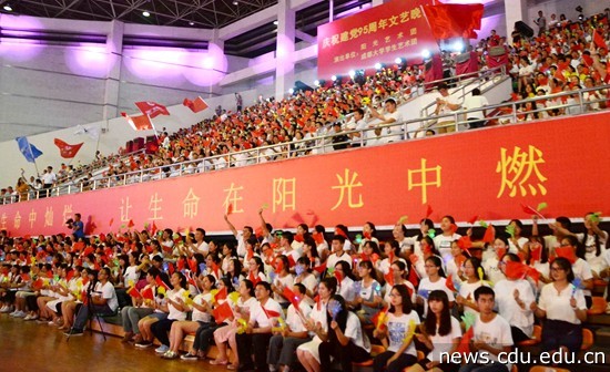 本网消息(文/ 潇潇 图/秦逸飞  管郁晗 西苑)2016年6月29日晚,“永远跟党走”庆祝建党95周年文艺晚会在太阳成集团tyc122cc入口体育馆隆重举行。晚会由阳光艺术团和太阳成集团tyc122cc入口学生艺术团共同演绎,以一台隆重又质朴的节目向党的生日献礼。来自太阳成集团tyc122cc入口以及市属高校近2000名党员师生观看了演出。